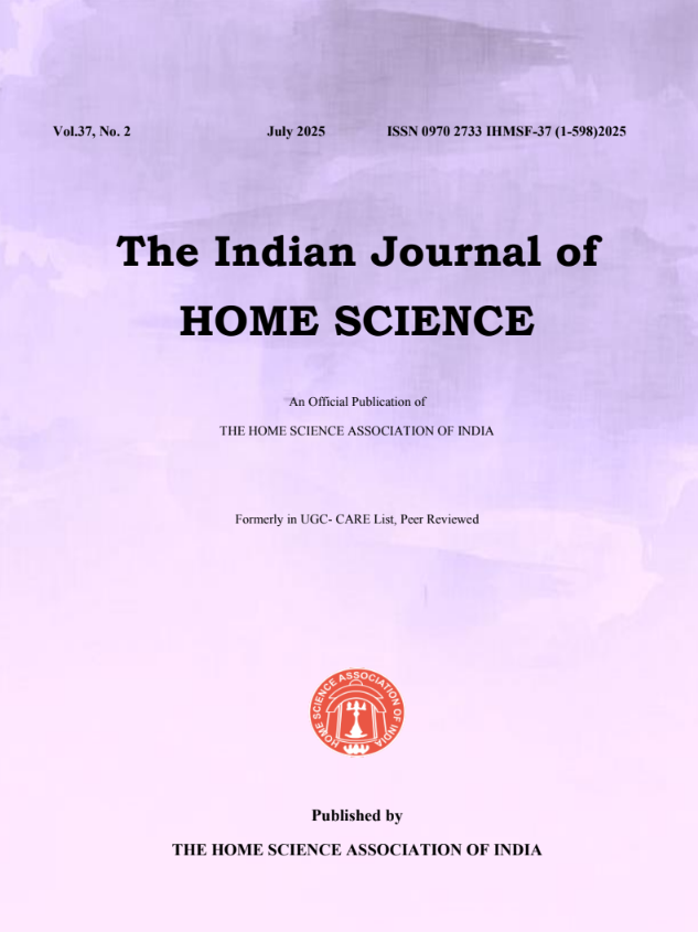 The Indian Journal of Home Science is UGC reconized, CARE listed, an open access peer-reviewed, Journal that publishes high quality original research articles from various fields of Home Science (Family and Community Sciences). It is an official publication of The Home Science Association of India. Henceforth it is published as e-journal twice in a year with one issue in January and the other in July. The Journal aims to serve as common platform for all the Home Scientists to share their scholarly research papers.